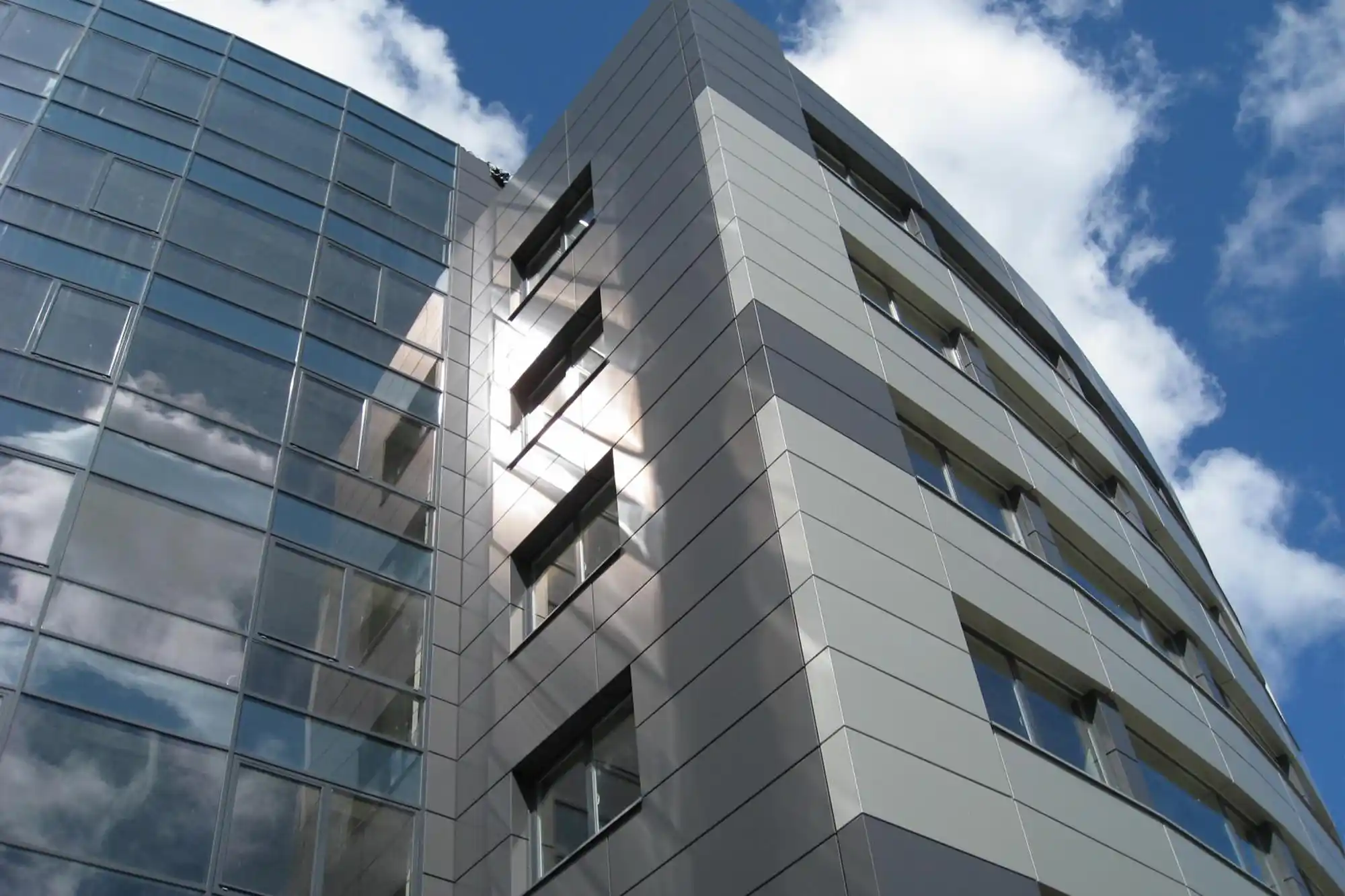 Kompozit panel cephe sistemleri, iki ince alüminyum levha arasına sıkıştırılmış polietilen veya yangına dayanıklı mineral dolgu çekirdeğinden oluşur.