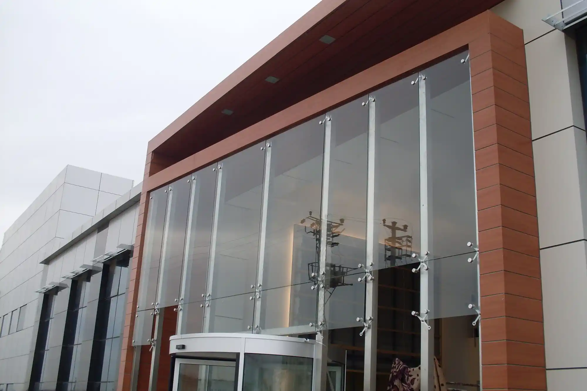 Özel paslanmaz rotiller aracılığıyla dört kenarından delinerek tutturulmuş olan tek veya çift lamine camlar taşıyıcı çelik konstrüksiyona mekanik olarak bağlanmaktadır.